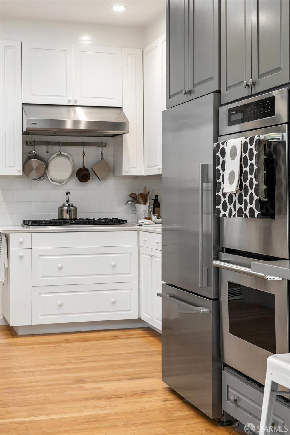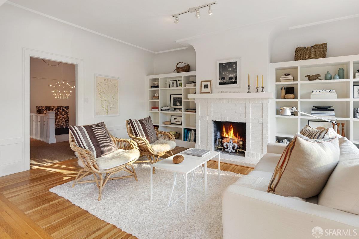 Bright and inviting 2BD/1BA top-floor home in a charming 2-unit building on one of Cow Hollow's most desirable tree-lined streets. Enjoy expansive Presidio views from the living and dining areas, an updated kitchen with skylight, fireplace, in-unit laundry, and generous storage. Peek-a-boo Bay and Alcatraz views from the bedrooms. Includes one-car (tandem) parking, shared backyard, new roof, and roof rights. Unbeatable location with easy access to the Presidio, the Marina, and Marin.