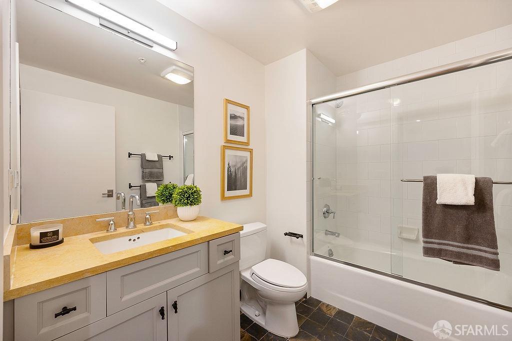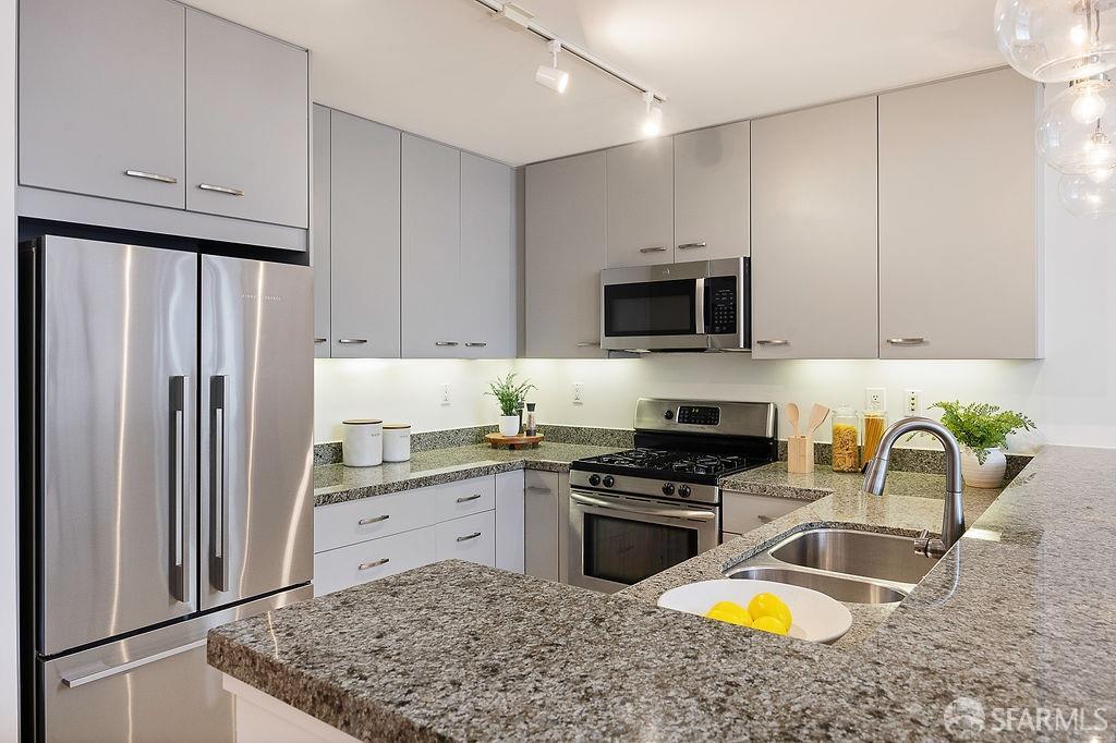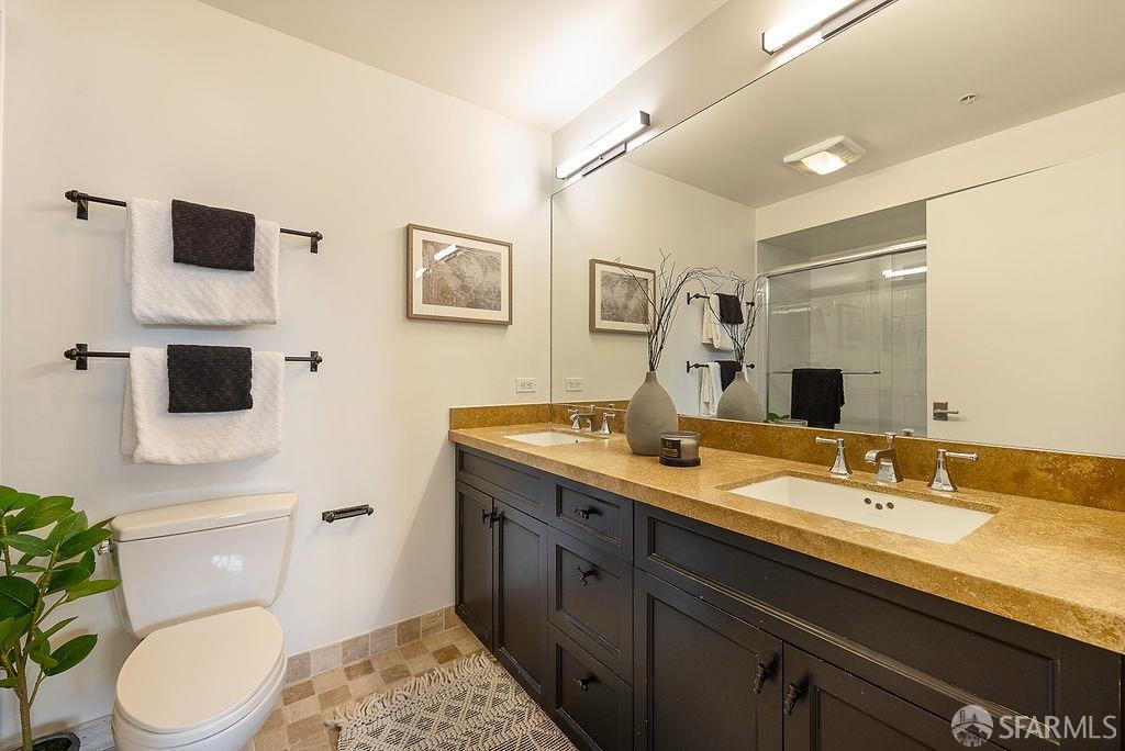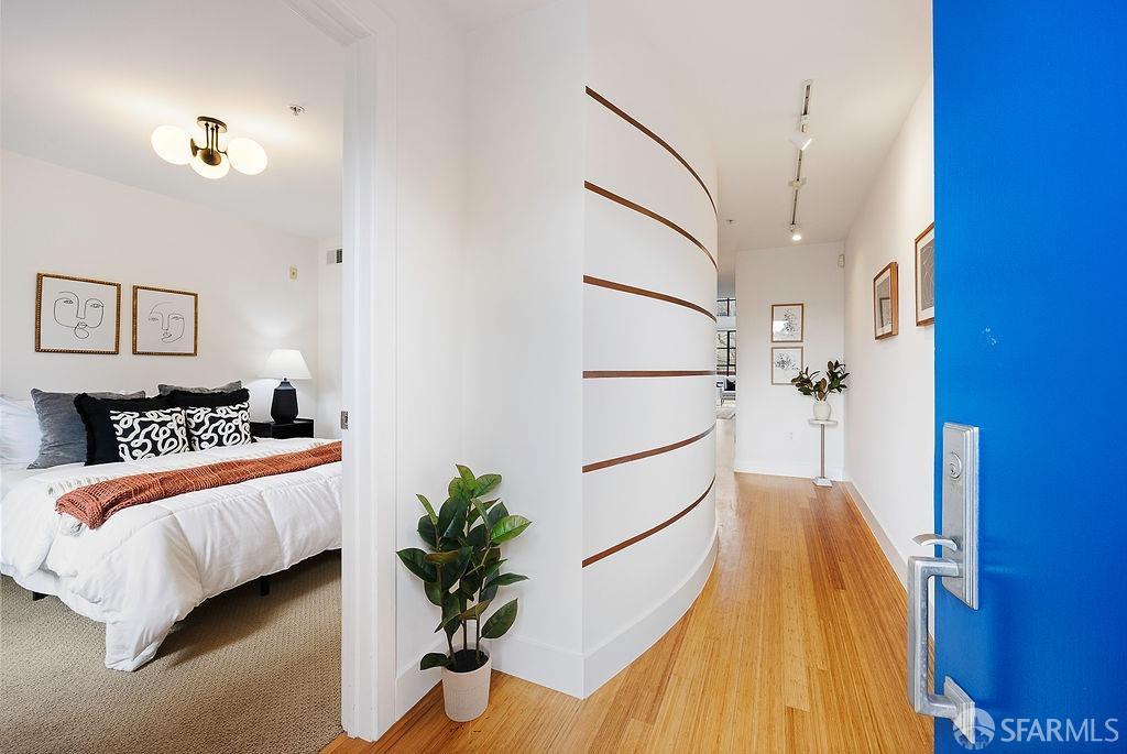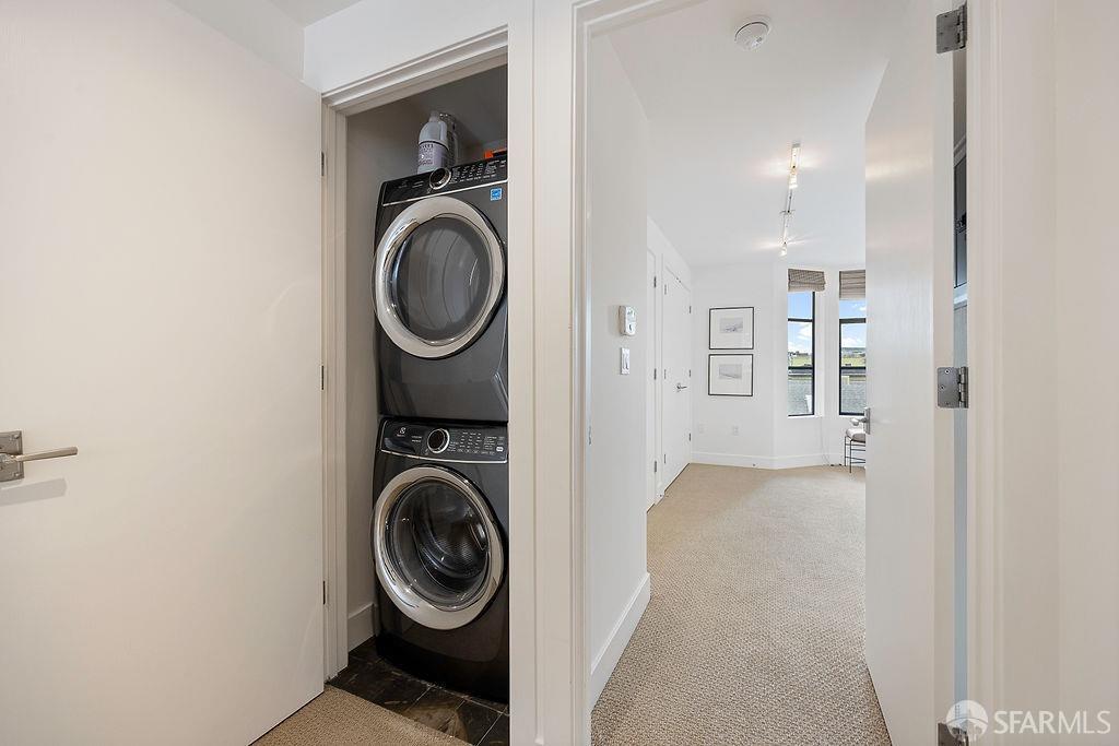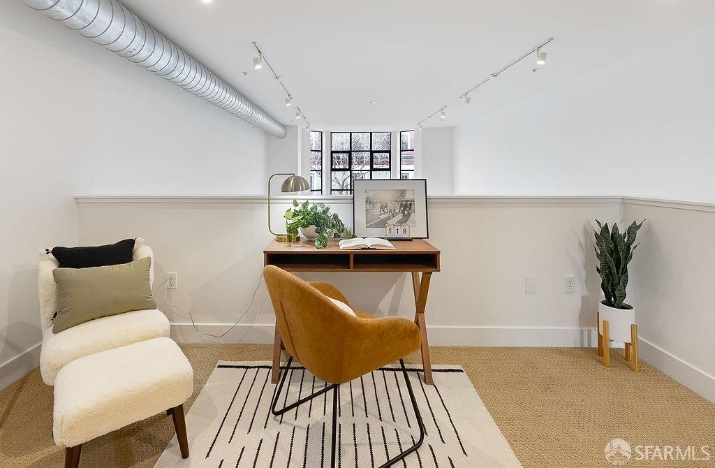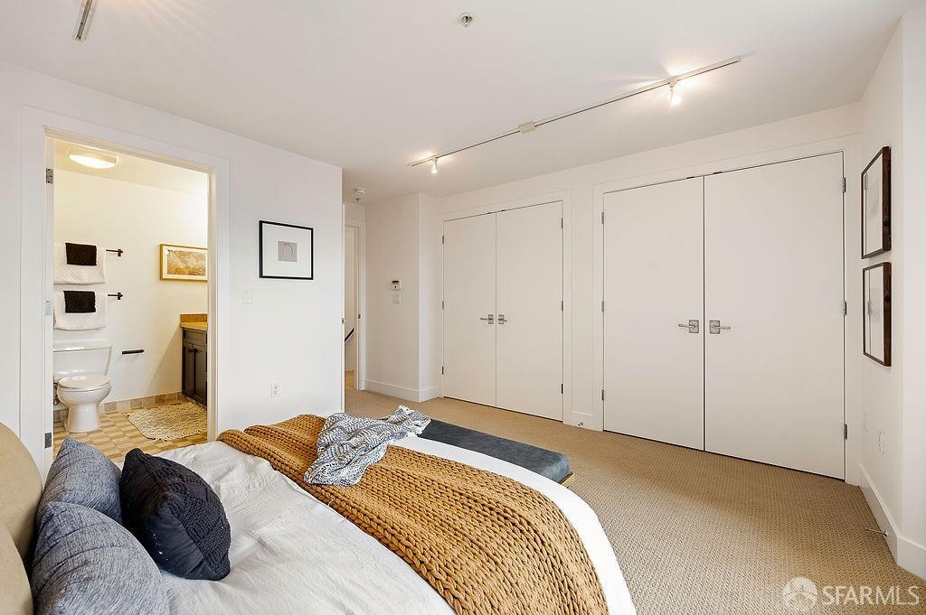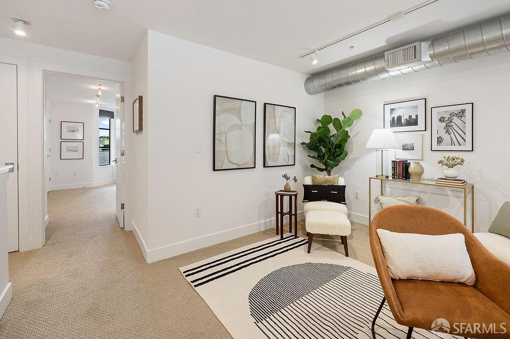 Experience the warmth of home at The Valencia! This contemporary 2-level residence boasts soaring ceilings, a flood of light from expansive windows, 2 bedrooms, 2 bathrooms, a versatile loft ideal for a home office or gym, a stunning kitchen and a generously-sized living/dining area. The well-designed open-concept floor plan is tailored for entertaining, and comes complete with an in-unit W/D and 1 secure garage parking. A vast communal patio offers residents a delightful space to unwind, enjoy coffee, or work remotely. Webpass Internet incl. in HOA fees. Situated in the Inner Mission, this distinctive condo with a 99 Walk Score & 100 Bike Score is just steps from the lively Valencia Street corridor, featuring trendy retail shops and restaurants. Public transportation is conveniently located one block away along with easy access to freeways, enhancing the accessibility of this prime location.